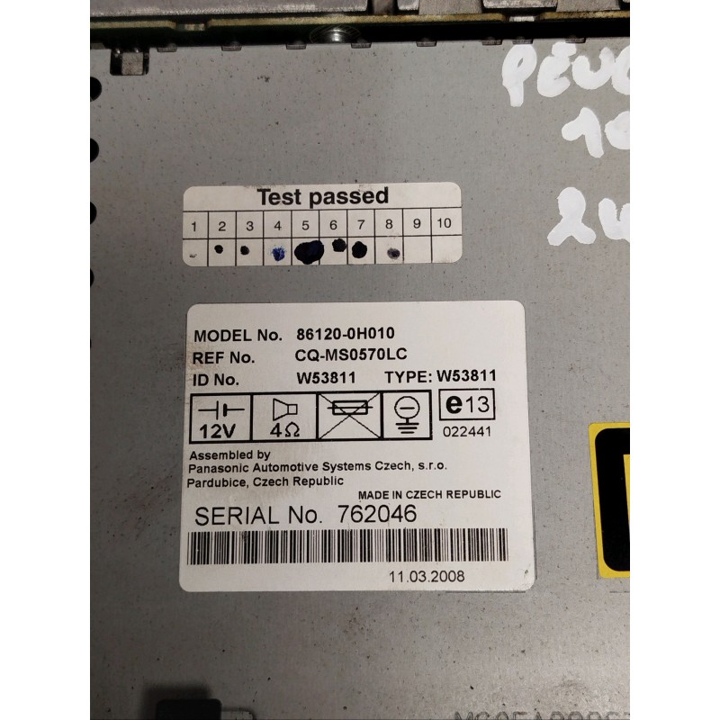 AUTORADIO PEUGEOT 107 PHASE 1 1.0I - 12V 2008
